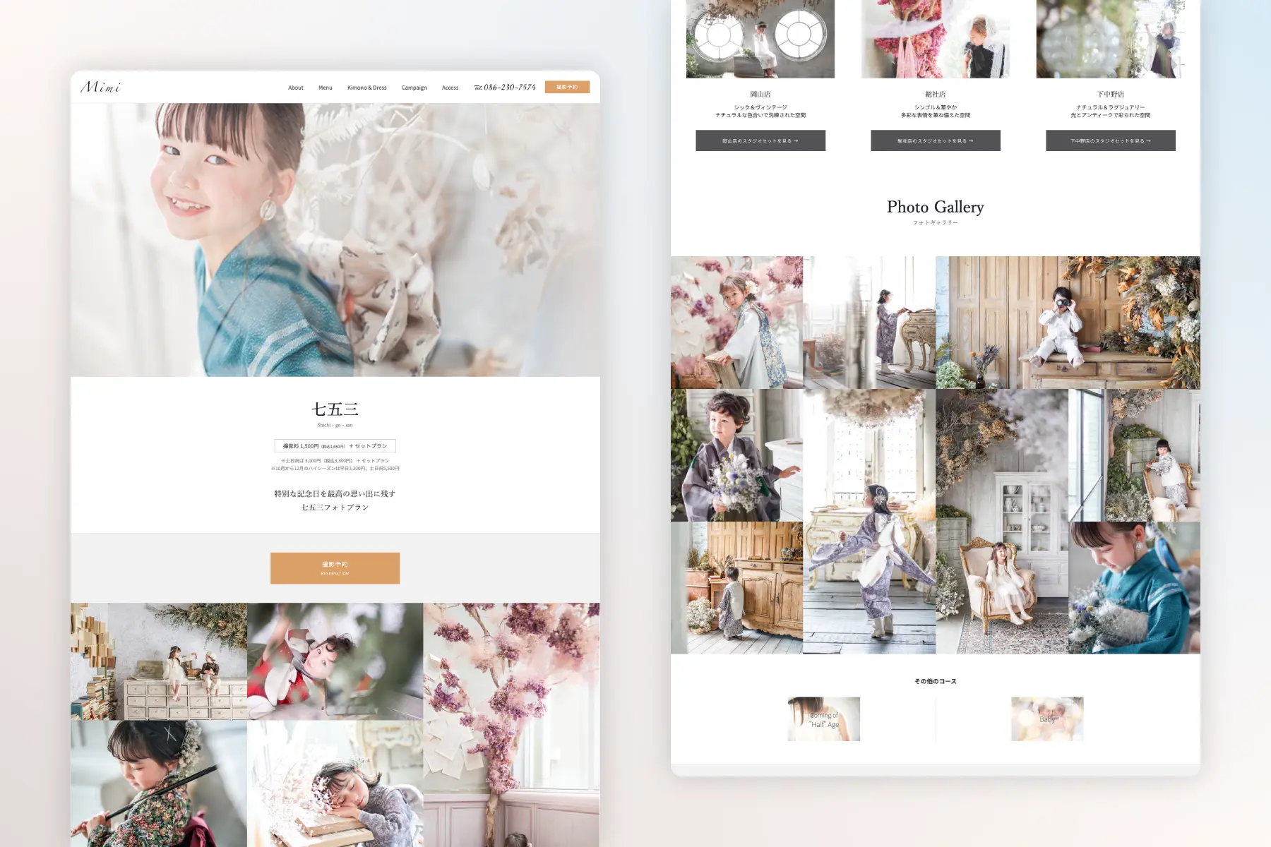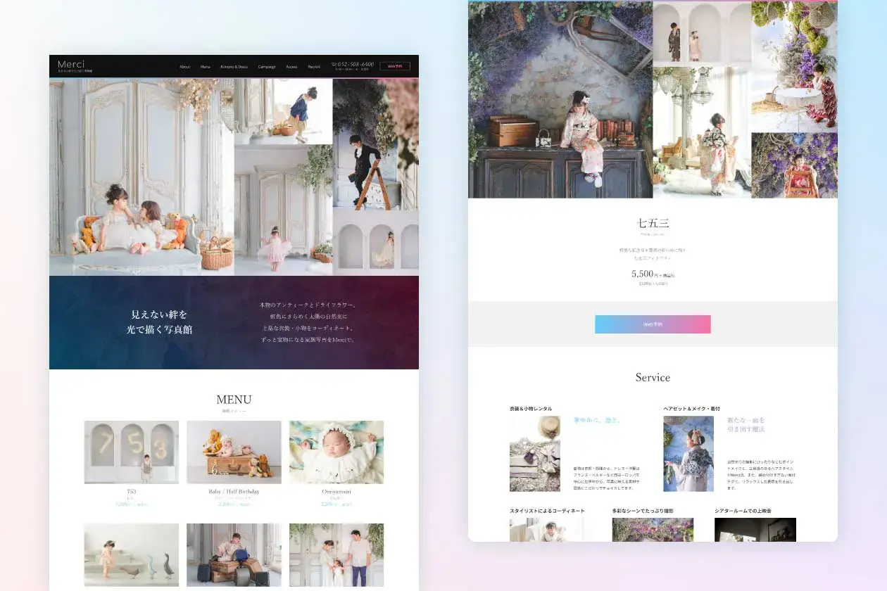 フォトスタジオのWebサイトにおいては、掲載される写真と同じくらい、サイトデザイン自体がブランドイメージに直結してユーザーへと伝わります。